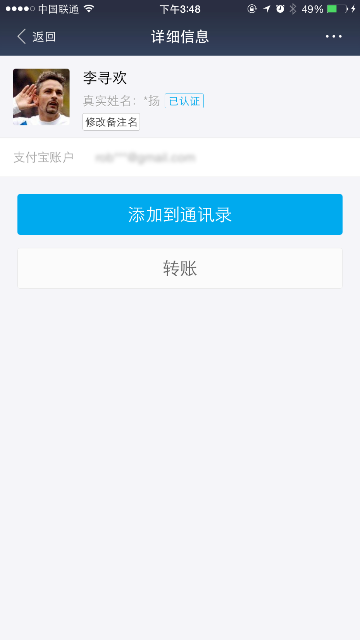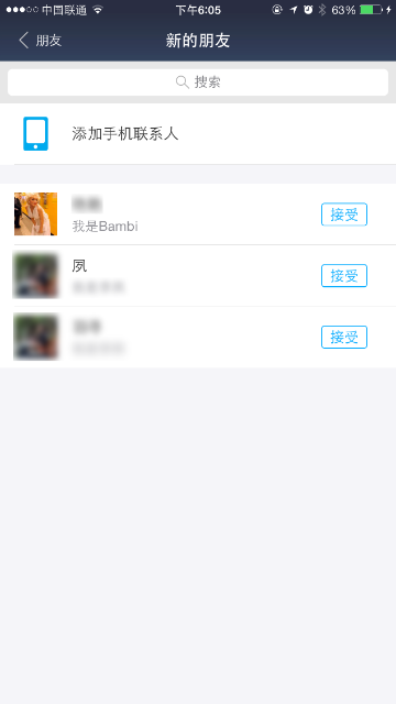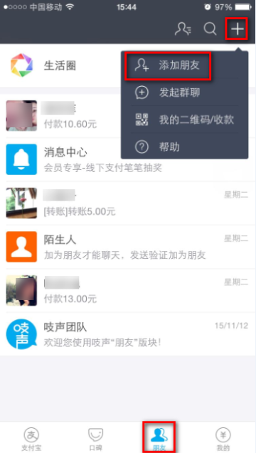 添加朋友的流程 大文 六月 5, 2016 无线支付宝 0 条评论 1577 围观 1 手机登录支付宝, 在朋友页面点击【+】, 点击【添加朋友】, 也可以进入【扫一扫】,扫码识别添加 2 在搜索拦内输入手机号或支付宝账号或会员名 3 显示对方资料页,可添加到通讯录 4 接收人页面 在【新的朋友】消息盒子里,点击进去可查看请求加为好友的信息 5 点【接受】即表示接受对方加自己为好友,(接收方可看到申请方的头像、昵称、个性签名、会员等级、所在地区、来源)