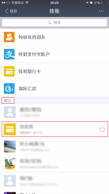 在手机支付宝,通过最近转账记录进行转账 大文 六月 5, 2016 无线支付宝 0 条评论 2150 围观 1 手机登录支付宝, 点击【转账】 2 在【最近】里面会显示最近转账到卡的记录,点击需要转账的银行卡信息 3 输入转账金额,【下一步】 4 核对信息,点击【确认转账】 5 输入支付密码,完成支付 6 付款成功,提交银行处理,等待到账