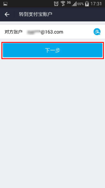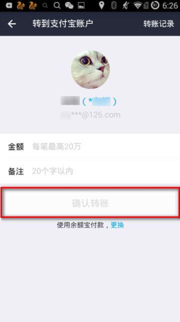 通过手机支付宝,转账到支付宝账户流程 大文 六月 5, 2016 无线支付宝 0 条评论 1588 围观 1 手机登录支付宝, 点击【转账】 2 转账页面显示该账户最近转账的交易对象,点击头像可直接给该对象进行转账,或点击【转到支付宝账户】填写收款人账户 3 填写收款方账户,点击【下一步】 4 填写转账金额、选择付款方式,点击【确认转账】 5 输入支付密码,点击【付款】,完成转账