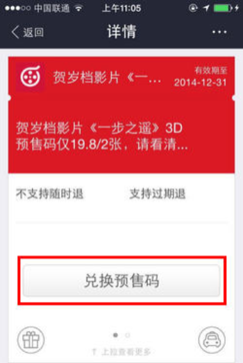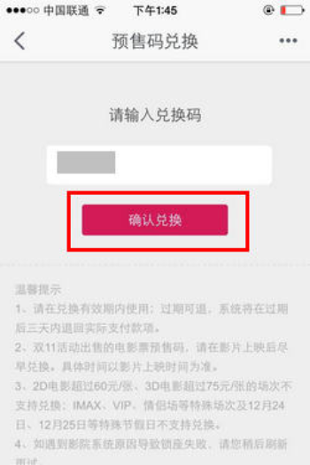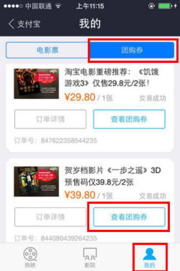 通过手机支付宝,通过预售码兑换电影票流程 大文 六月 5, 2016 无线支付宝 0 条评论 4590 围观 1 手机登录支付宝, 点击【淘宝电影】 2 点击【我的】—【团购券】,选择所需兑换的电影,点击【查看团购券】 3 点击【兑换预售码】 4 跳转至手机淘宝(若没有安装,会推荐下载),点击【确认兑换】,选择对应的电影、影院、日期、场次、座位,成功兑换电影票