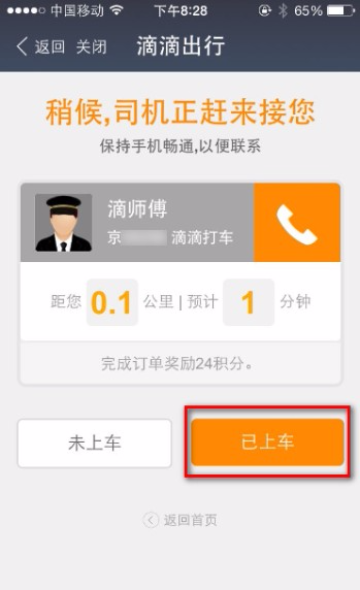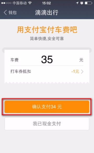 通过手机支付宝,滴滴出行的流程 大文 六月 5, 2016 无线支付宝 0 条评论 1468 围观 1 手机登录支付宝, 点击【滴滴出行】 2 输入目的地,点击【叫出租车】 3 系统会通知附近的出租车 4 有人接单后,页面提示“司机正赶来接您”,上车后,点击【已上车】 5 到达目的后,手动输入价格,账户里有可抵扣的打车券,页面会自动显示抵扣金额,点击【确认支付XX元】完成支付即可