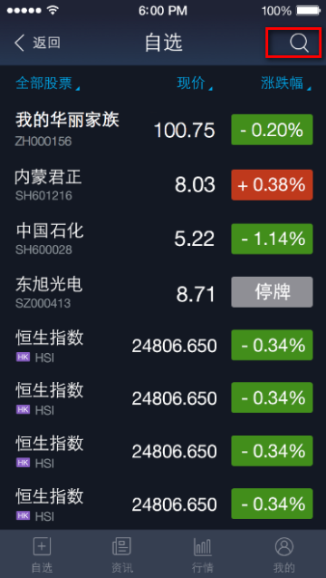 添加自选股流程 大文 六月 5, 2016 无线支付宝 0 条评论 1665 围观 1 手机登录支付宝, 点击【我的】—【股票】 2 在自选股页面右上角点击查询按钮 3 输入对应股票代码后,点击【添加】即可