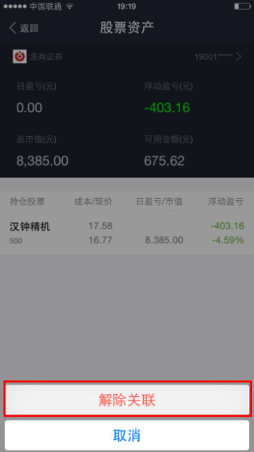 解除关联券商流程 大文 六月 5, 2016 无线支付宝 0 条评论 1961 围观 1 手机登录支付宝, 点击【我的】—【股票】 2 点击右上角的头像 3 选中要取消关联的证券,点击右上角账号 4 选择【解除关联】 5 点击【确定】即可