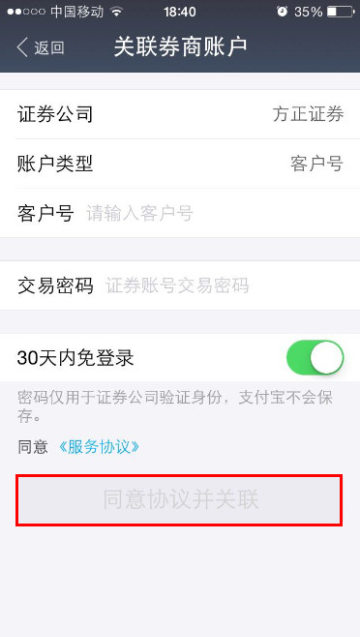 关联券商操作流程 大文 六月 5, 2016 无线支付宝 0 条评论 1716 围观 1 因系统维护,关联券商功能暂时关闭,恢复时间待定 手机登录支付宝, 点击【我的】—【股票】 2 点击右上角的头像 3 在搜索框输入对应的证券公司 4 输入相关信息点击【同意协议并关联】即可