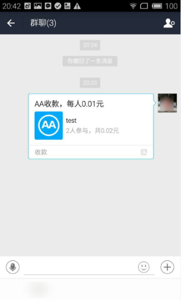 6 发送成功,即收款对象可在所选择的会话页中查看