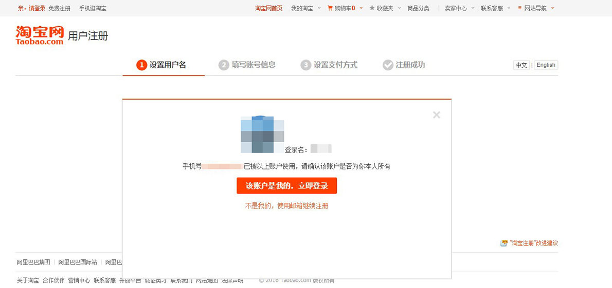 注册时,提示“手机号***已被以上账户使用,请确认该账户是否为你本人所有”,怎么办? 大文 六月 5, 2016 账号与安全 0 条评论 8330 围观 亲,如您注册时提示”手机已被其他账号使用“,说明这个手机号已经注册过淘宝账户了哦~ 1.有可能是您自己之前注册了账户您忘记了,您可以点击立即登陆,通过找回密码登录账号 2.如果不是您自己注册的,可能是由于运营商二次放号造成的。请点击使用邮箱继续注册,按照流程注册成功后,手机号码会绑定在您新注册的账号上面,可作为接收验证码的安全手机使用哦,不会对您的账号造成安全隐患的哦