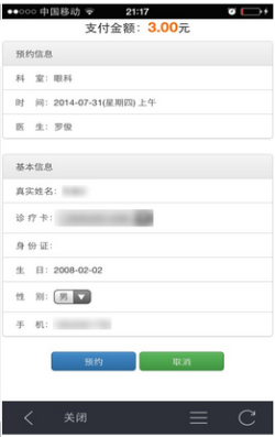 付款成功即可预约成功