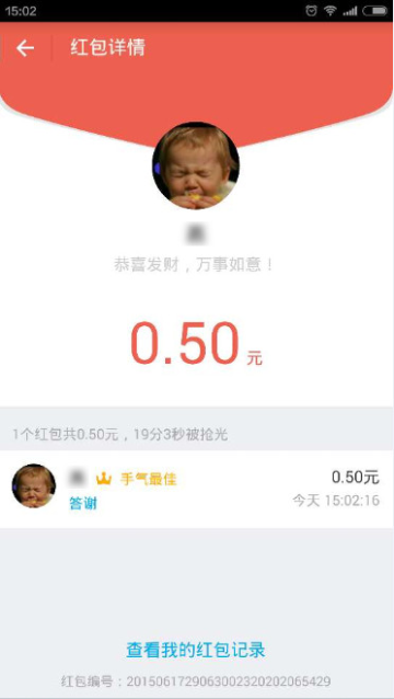 领取群红包流程 大文 六月 9, 2016 应用中心 0 条评论 1576 围观 1 以发送到支付宝群为例 当群红包发出后,接收方在支付宝APP—【朋友】中,点击群信息 2 点击拆开红包 3 点击后打开支付宝APP领取红包内金额,领取后金额转入领取者的支付宝账户余额(红包金额先到先得,领完为止)