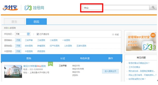 可以通过医院所在的地区、医院等级、医院类型、是否已开通挂号等条件来筛选
