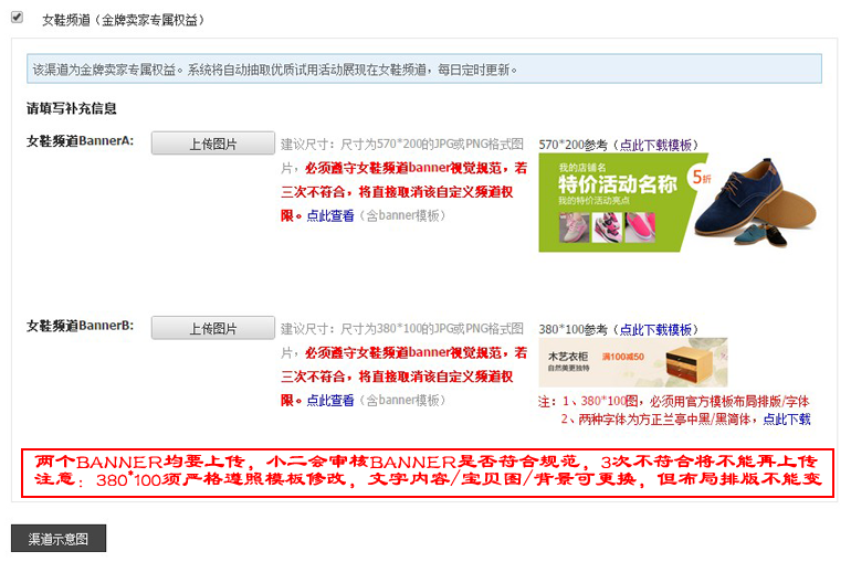 【金牌卖家】权益详解之 女鞋/男鞋/箱包频道banner开放
