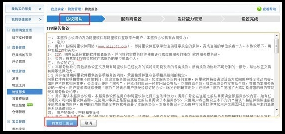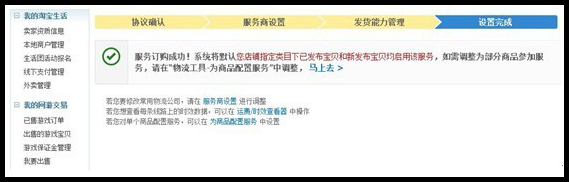 1.2.2成功订购并启用服务需完成四个个步骤:签订服务协议、配置快递公司、设置发货能力、配置商品。