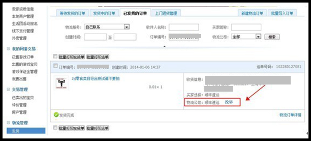 1.6.2 可在卖家中心-发货-已发货订单发起对快递公司的投诉(只有符合投诉规则的订单,才可见“投诉”按钮)