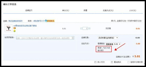 若买家是在当天(假设是1月6日)16点之前(含16点)下单,则在订单确认页面展示的文案为:承诺1.7达(16点前付款);若买家在当天16点之后下单,则在订单确认页面展示的文案为:承诺1.8达(次日16点前付款)