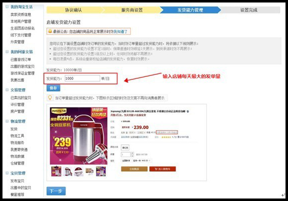 C. 设置发货能力(在店铺成交单量超出发货能力情况下,降低店铺因来不及发货导致到货延迟投诉处罚)