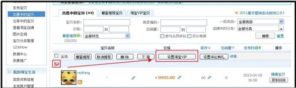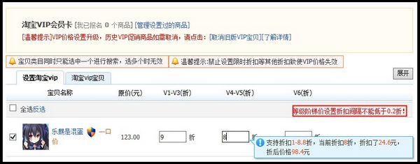 注意设置VIP宝贝价必须是参加消费者保障服务的卖家哦。