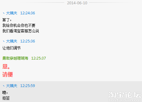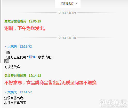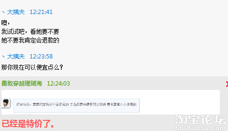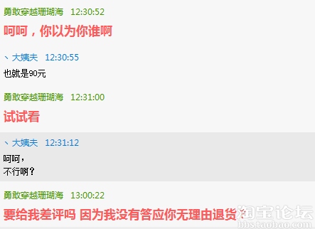 请教各位 有这样的聊天记录截图,买家差评的话能维权成功吗 dawen321 六月 24, 2016 卖家活动 0 条评论 2412 围观 第一次碰见这种人,搞不清是不是职业差评师还是真的只是脑残。如果他给我差评,我请求淘宝客服介入,能维权成功吗? 答:这种情况申述是没有用的。淘宝都是偏向买家的