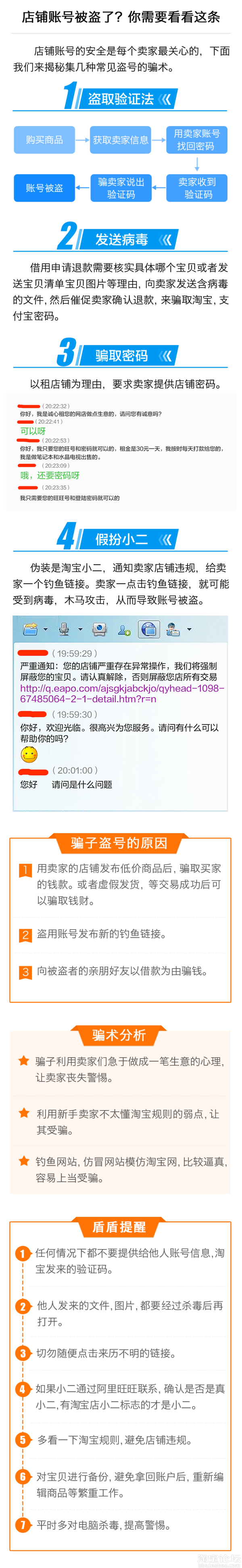 店铺账号的安全是每个卖家最关心的,下面我们来揭秘集中常见的盗号骗术