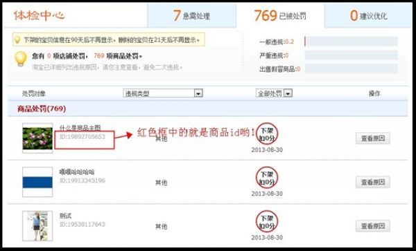 商品编号具有唯一性,且均由数字构成,如同身份证号码,属于商品链接中的一部分。查看商品id,有两个常规入口:出售中的宝贝及体检中心。