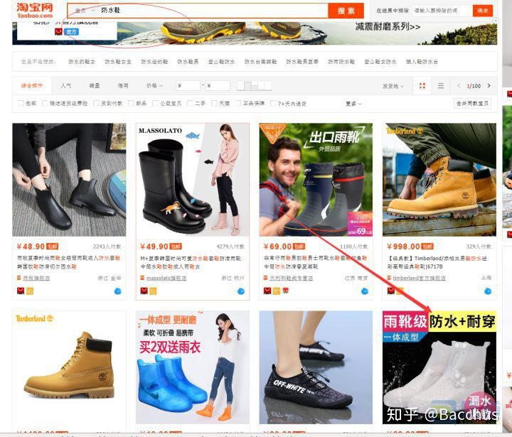 拿防水鞋过来举例,你看到这么多产品的时候,你会点击哪一个?