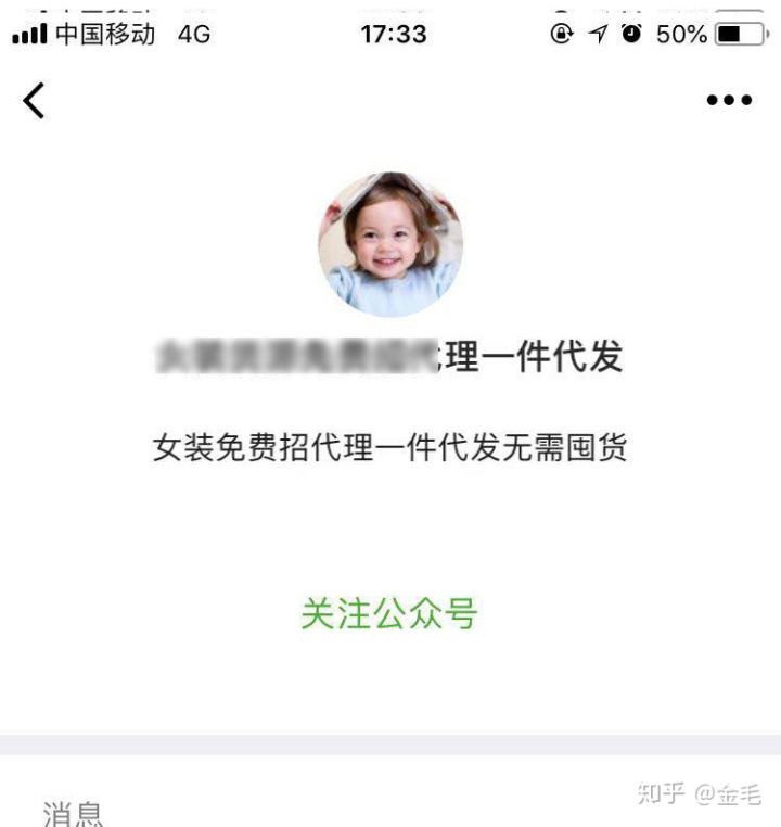 当然,你也可以在微信里找找货源,有很多档口注册订阅号,给自家招代理,但这种你要实地考察一下,不保证没有骗子混杂其中捞金。微信找货最好找以公司为主体注册的账号,更有可信度。如下:个人账号。