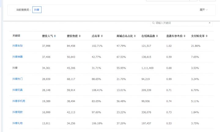 我分享一个给朋友她想做做兼职的,找到我怎么最小的成本做点淘宝,不求赚多少钱,于是我在看抖音的时候,用生意参谋的查找关键词功能搜索了一下抖音,可能是职业病一样的。
