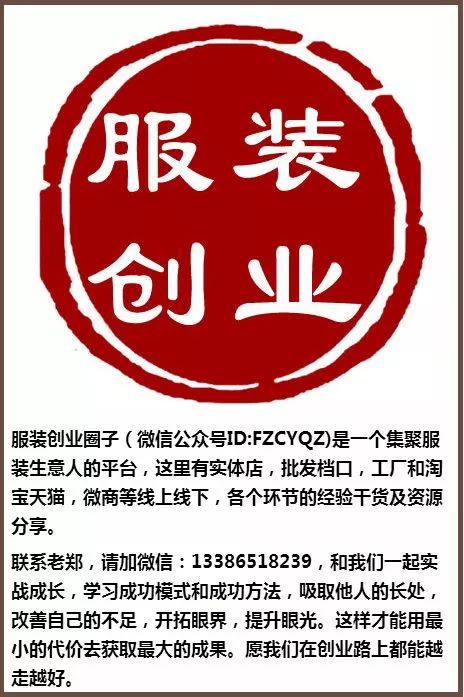 老郑粗略总结了7点可供参考的拿货渠道,如果想更深入的了解货源问题,欢迎随时加入我们服装圈社群。生意要做大,你的渠道资源要多,货源资源要多,人脉资源也要多。自己要舍得花钱出去看市场,每一次学习就是每一次进步,对你的生意绝对是有百利无一害。老郑自己都觉得,每天只花5元钱就可以在服装圈社群中分享到各种服装资源,太便宜了!