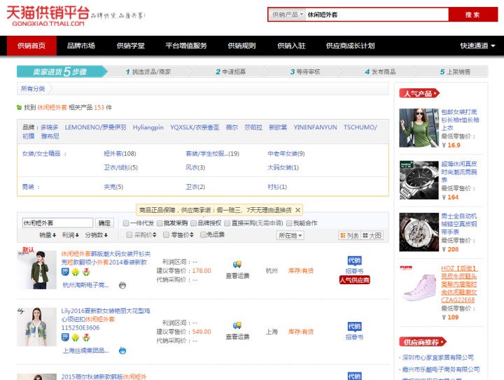 很多品牌女装都有入驻天猫供销平台,当然里面可以选择的货源很多。实在找不到也可以去1688,或者直接私信我要什么风格的吧。