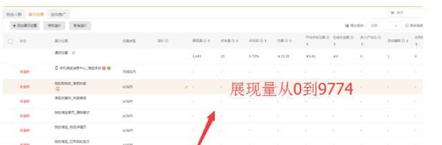 这个是第一天开定向,一开始我们开智能投放,通投这个位置会占有一定的展现量,我们最终的目的是将展现集中到手淘首页猜你喜欢,那么我们就每天给猜你喜欢这个位置增加溢价,直到通投位置的展现越来越少到10%左右即可。