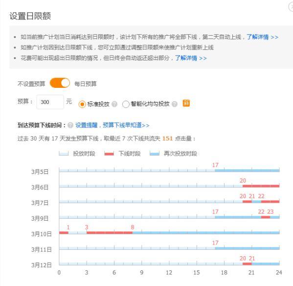 选择标准投放,不要去选择智能化均匀投放,这里不做过多解释。我自己设置的预算是300元,根据自己的资金实力来吧。