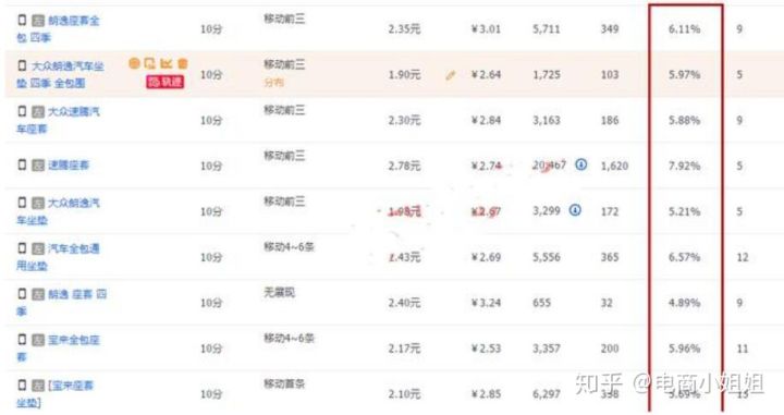 然后调整每个关键词的出价,我操作时会调试10条以内,这样关键词也有一定的展现量,如果数据量太小,可以提高排名,这样数据提升的高时质量分也会跟着提升。