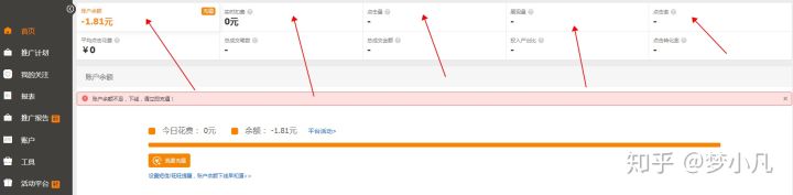 这里是直通车推广工具首页,首页这边展示的是直通车推广数据,这些数据都是实时更新的,我们在开直通车的过程中数据也是需要实时跟踪的,为了确保自己的直通车花费减少和各项数据的监控提升,出现异常时我们可以及时处理。直通车推广付费是以充值现金的方式进行推广,我们可以直接点账户余额这边的充值进行充值,每次充值金额最低是200元起充。充值好后这里就会显示账户余额,在推广中的扣费情况也会在这里显示。