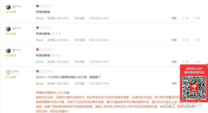 小米刷单了,荣耀也刷单。小米是自己人给自己人刷单。荣耀的买家都是自愿下单,荣耀不发货,到20多号后取消订单。618过去了,业绩也刷上去了,618干的赔钱买卖当然就不认了。