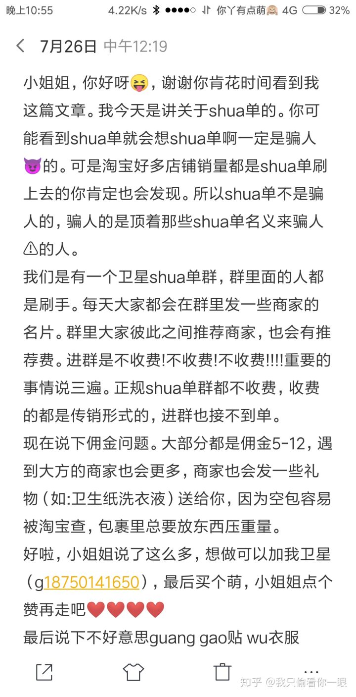 3. 刷单是淘宝产业链的一个黑色收入,刷单的行为对于整个淘宝行业也是必不可少的,换句话来说刷单的行为也就行骗,蒙蔽消费者的眼睛,对于整个电子商务来说,如果我店铺不刷单,肯定超不过同行的竞争对手,因为竞争对手刷,所以我才刷,比如竞争对手的月销量有1000我家店铺的月销量只有900,那么我每天刷4单,一个月后我就能超过我的竞争对手,对于这种心理自然而然的孕育出了刷单的这个行业,行业里的骗子也由此钻了空子,让很多的卖家,买家付出了很大的代价。