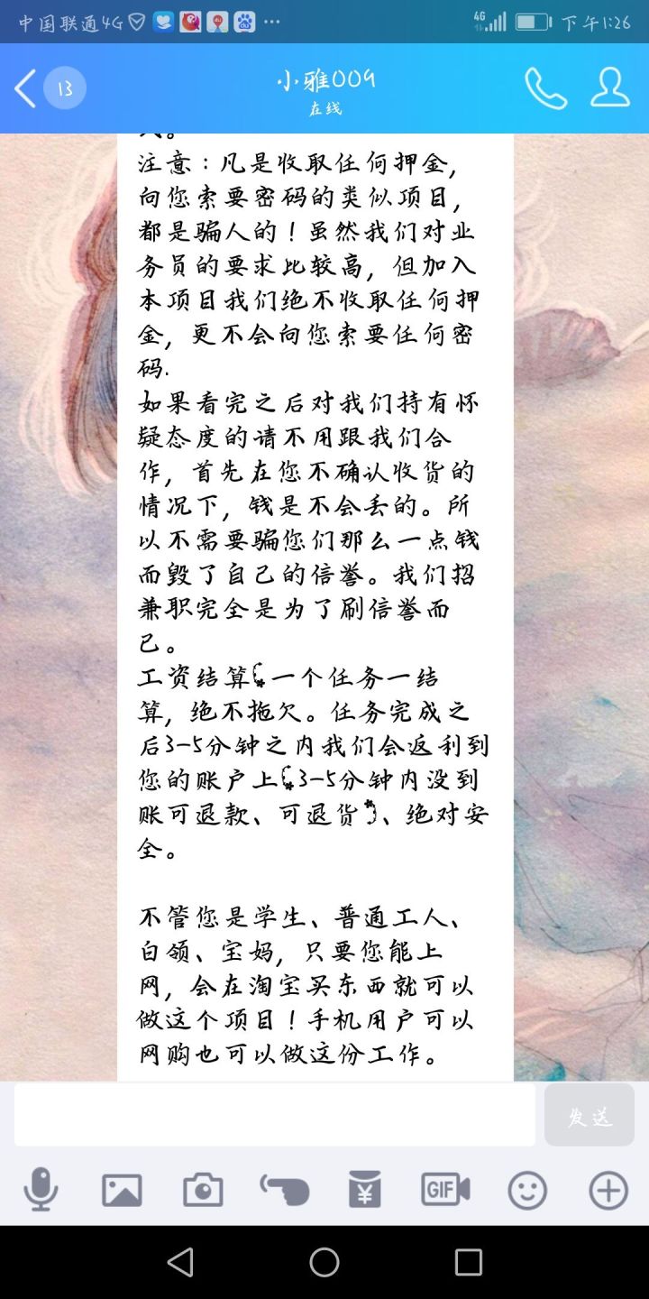 楼主只是想把自己遇到的骗子的这种诈骗方法公之于众,让更多人引以为戒,毕竟刷单诈骗手段层出不穷。希望更多人能明白,特别是女孩子,天上不会掉馅饼,骗子最喜欢骗小女生了!!