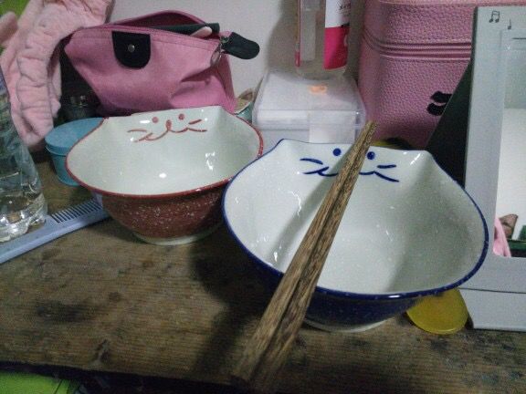 然后没忍住给刚同居的男朋友一人来了一个木下同款猫咪碗哈哈哈~