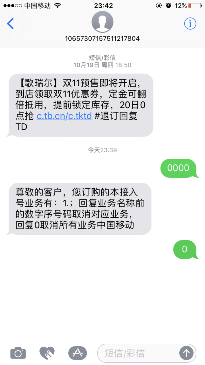 双十一期间有多少发给移动号码的短信直接在服务器端都被拦截了,商家们做的精准营销全部化为泡影。就好像,移动的服务器那边直接装了个360,拦掉了非常多的短信。