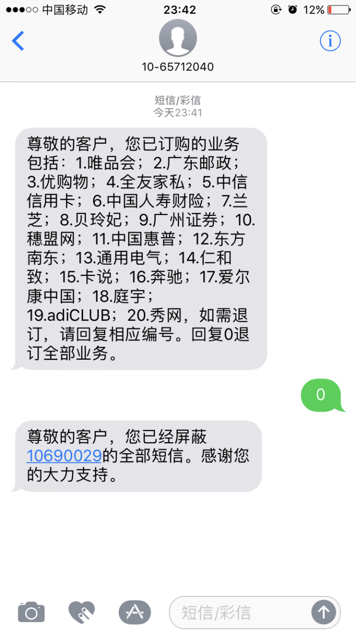 不然你觉得双十一期间上十亿条的短信怎么会没把大家的手机都塞爆了。