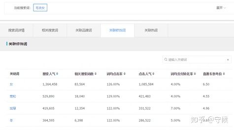 3.下拉框热词 将1,2,3三种数据整合到一张表格里面,找到重复次数多的属性词—最终确定的属性(店铺的风格属性)比如宽松那么接下来,我们找到了这个热销的属性之后呢,是不是要把这个喜好这类风格属性的人群找到,怎么找呢,同样要借助我们的工具—生意参谋市场行情的搜索人群画像: