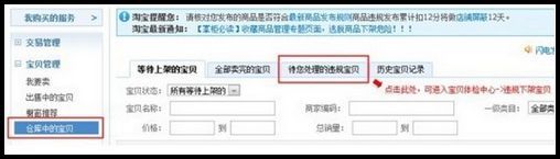 如何进入宝贝体检中心? 大文 三月 31, 2016 商品管理 0 条评论 1366 围观 您可以通过以下几个地方进入宝贝体检中心: 1、卖家中心首页,左侧快速导航–宝贝管理–宝贝体检中心: 2、卖家中心首页,快速导航–宝贝管理–宝贝体检中心–橱窗推荐宝贝右侧,信息提醒: 3、仓库中的宝贝–待您处理的违规宝贝:
