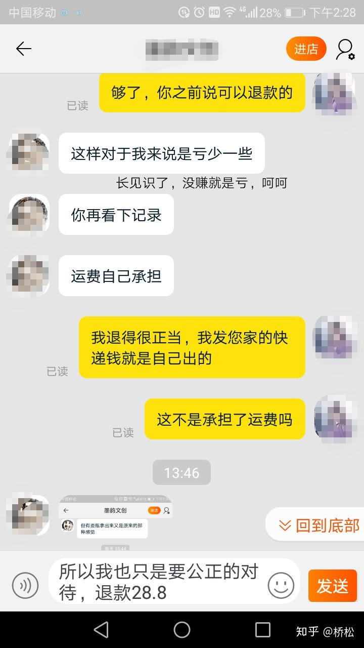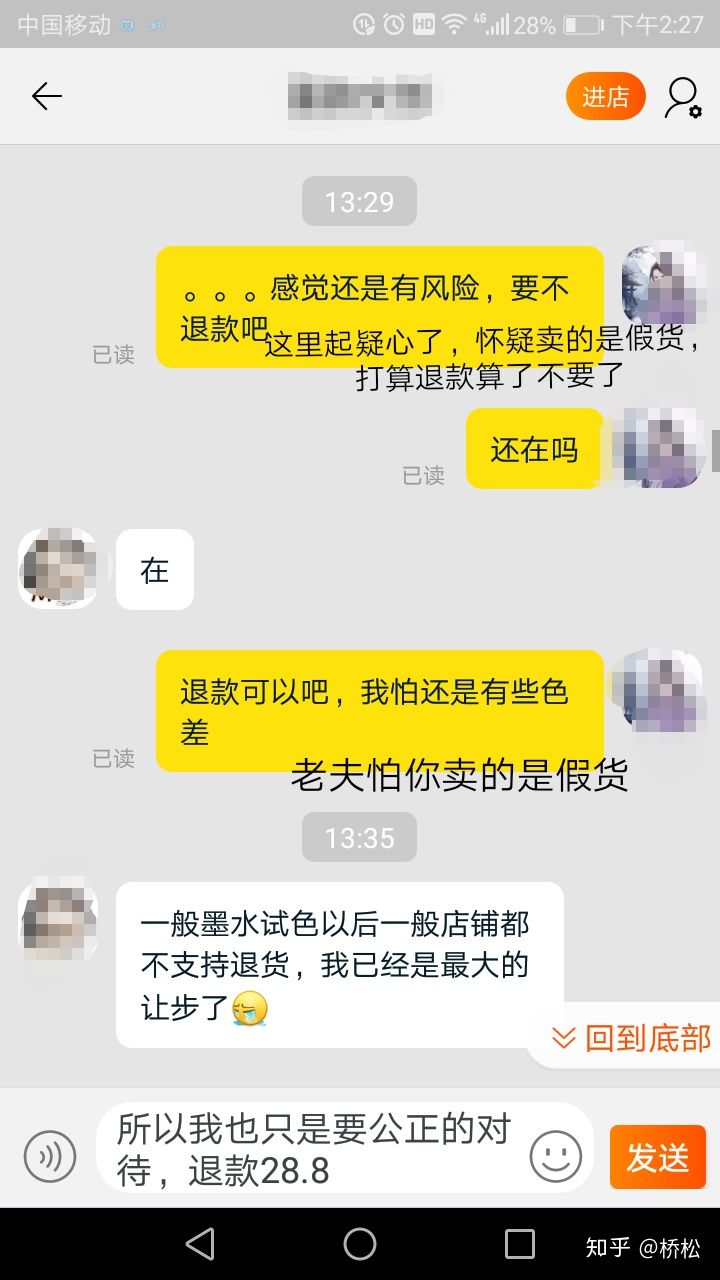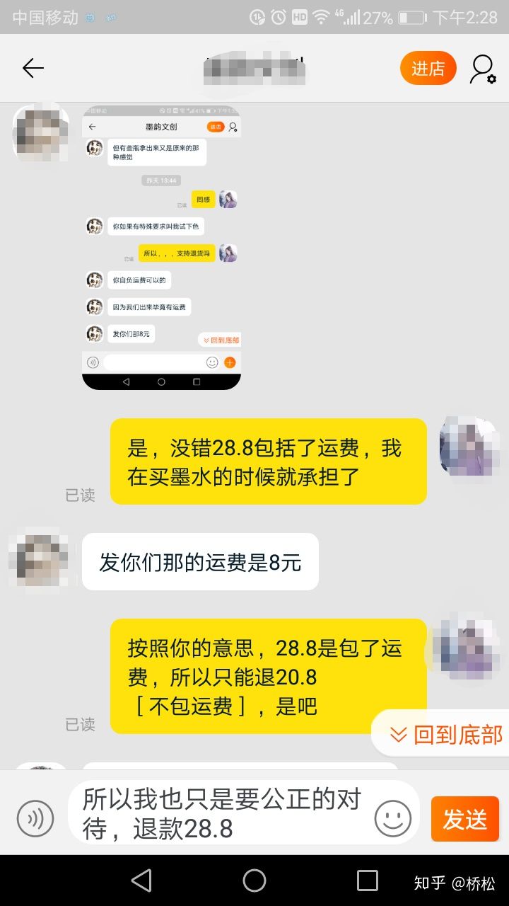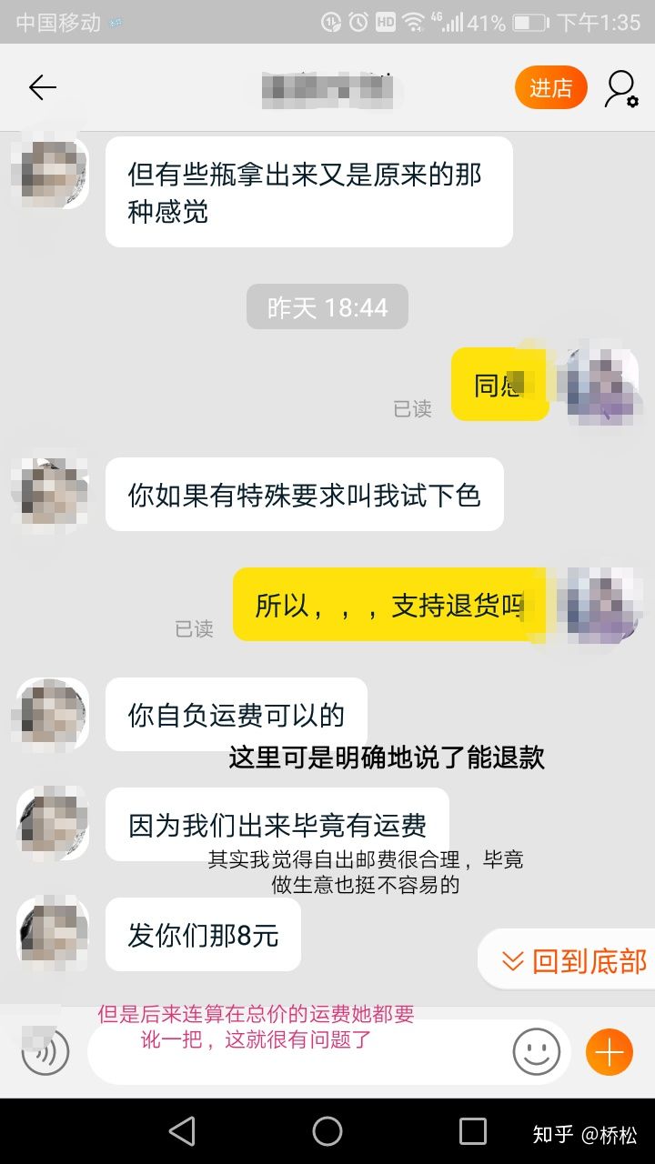 事情是这样的,我在一家店买了瓶鲶鱼墨水,色差严重,要求换;后来想到这家店卖的是假货,就要求退款,卖家也同意了。结果后来卖家脑阔有问题,死命要讹我八块钱