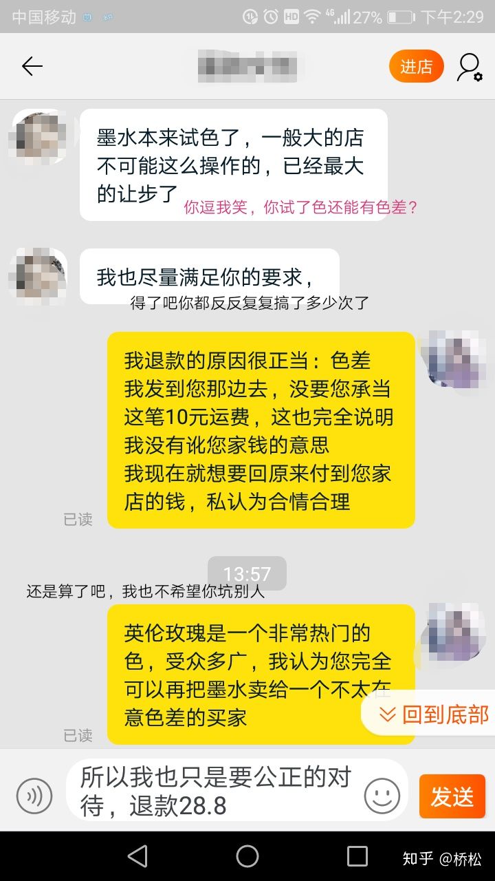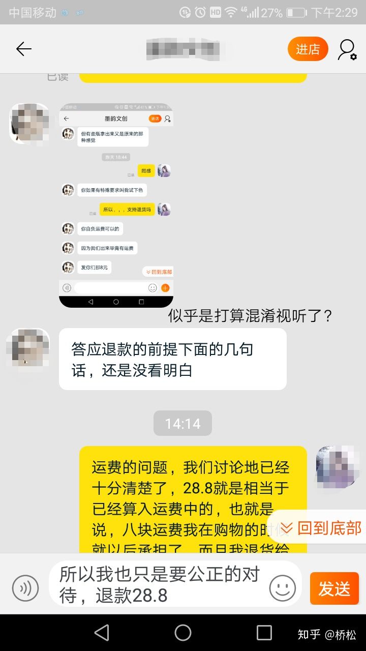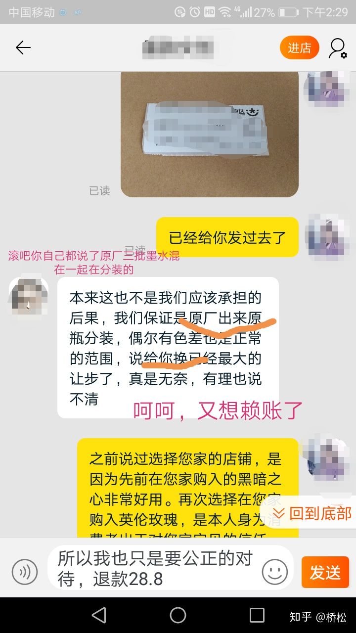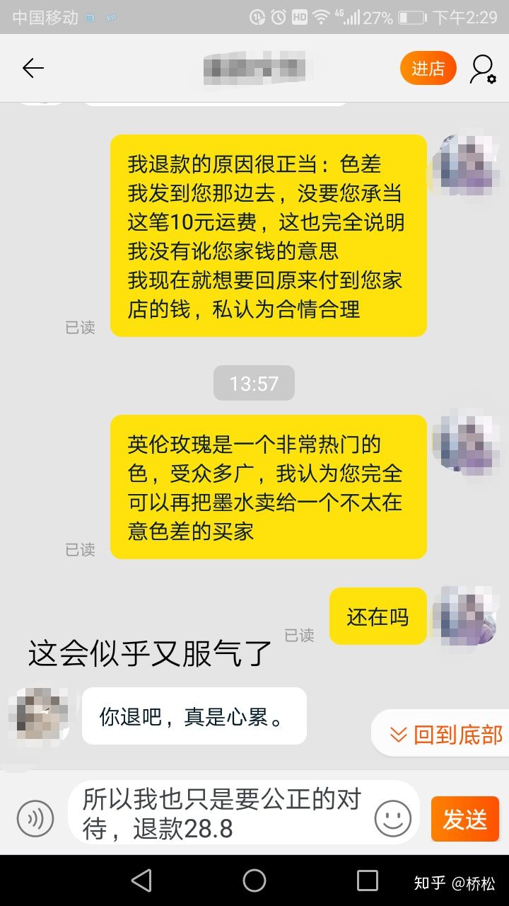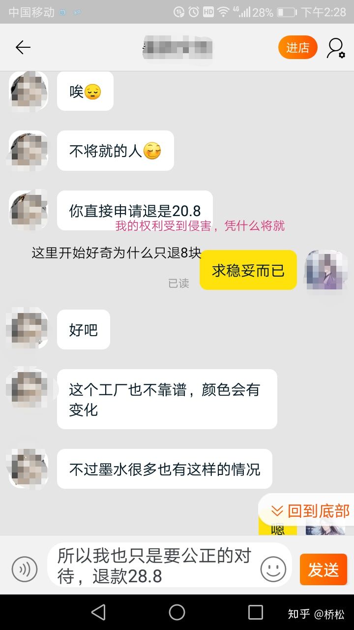 事情是这样的,我在一家店买了瓶鲶鱼墨水,色差严重,要求换;后来想到这家店卖的是假货,就要求退款,卖家也同意了。结果后来卖家脑阔有问题,死命要讹我八块钱