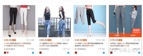 在以上四款产品中,第一款和第三款直接表达了产品,而第二幅图放大了产品场景化,增大了模特比例,缩小了裤型表达,因此我们搜索相关产品时可以看到很多都是直接表达产品的。