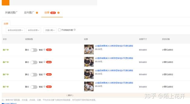 1)直接设置直通车后台需要放置的所有创意图片,标题关键字设置为一样,创意类型选择静态。