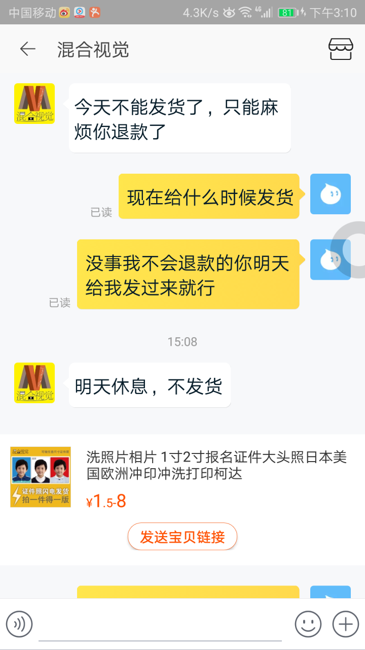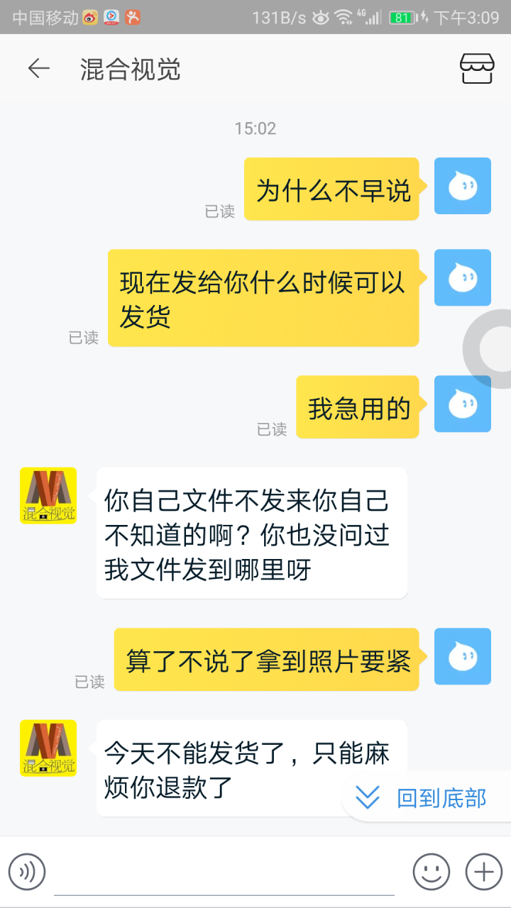 图1.2是他们店差评之后店家给的答复,厉害吧,剩下的是聊天记录,这下可以了吧,货到现在还没发出,好了说说你们的看法吧