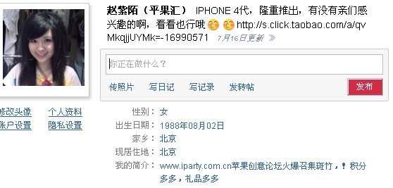 (3)人气提升到达5—10万,好友加满,就可以发表软文性质的广告了。可以是招募淘客的,淘客咨询,也可以是自己的产品的。