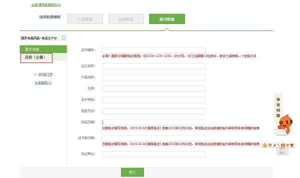 我填写的生产许可证编号、QS提示我过期,怎么办? 大文 三月 31, 2016 商品管理 0 条评论 2473 围观 亲,请您进行QS的申请添加哦,申请入口点此查看。审核时间2个工作日,在接到审核通过之后会存在延迟在接到审核通过之后需要48小时之后方可使用。 温馨提醒 所有内容都是必填项 填写的内容需跟生产许可证上的内容一致,以下是示例图 3.资质(必填)中记得上传QS证书的原件