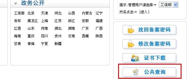 点击进去后,再点击右上角的【备案信息查询】按钮,如下图: