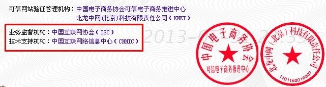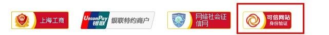 下面我们继续查看网站的企业执照,和国家机构颁发的【可信网站】番号,和国家机构颁发的【网上交易保障中心】番号。