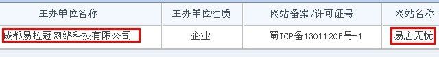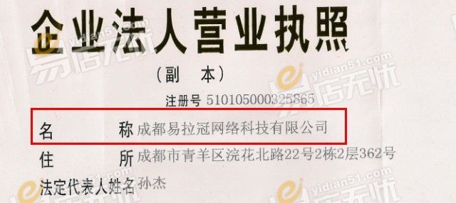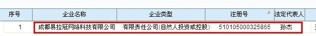 以上可以查询,可以看出第一、企业是真实存在的!在四川工商局网站是可以查询到的,第二、网站是由成都易拉冠网络科技有限公司主办!