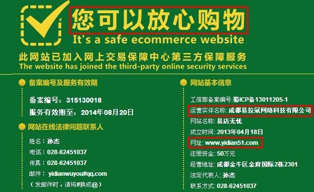 均由国家权威机构颁发的番号!下面,我们继续查看国家权威机构颁发的【网上交易保障中心】番号,请点击易店无忧官网域名:img.yidian51.com 进入后拉到最低部,点击【网上交易保障中心】图片查看,如下图: